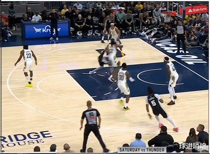 第二次是防守端破坏对手进攻后,持球发起一条龙反击,从自家禁区到对手禁区文班亚马只运了4次球便大步流星完成三步反击上篮打成2+1。